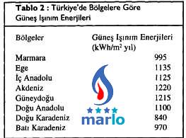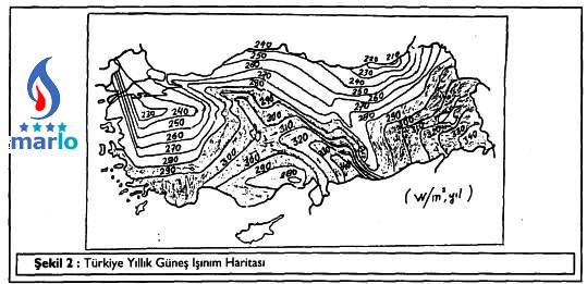 Bunun için güneş enerji santrallarının yatırım maliyeti çok yüksektir, fakat güneş enerjili santrallerde maliyet, direkt olarak güneş ışınım şiddeti ile ilgilidir. Bu ışınım şiddetleri, ışınım şiddeti eğrilerinin ortalamaları ve güneşlenme süresi ile ilgilidir. Türkiye'deki bölgelere göre ortalama ışınım enerjileri Tablo.2'de verilmiştir (5). Bütün Türkiye'nin ışınım şiddeti eğrileri de Şekil.2'de verilmiştir (6).